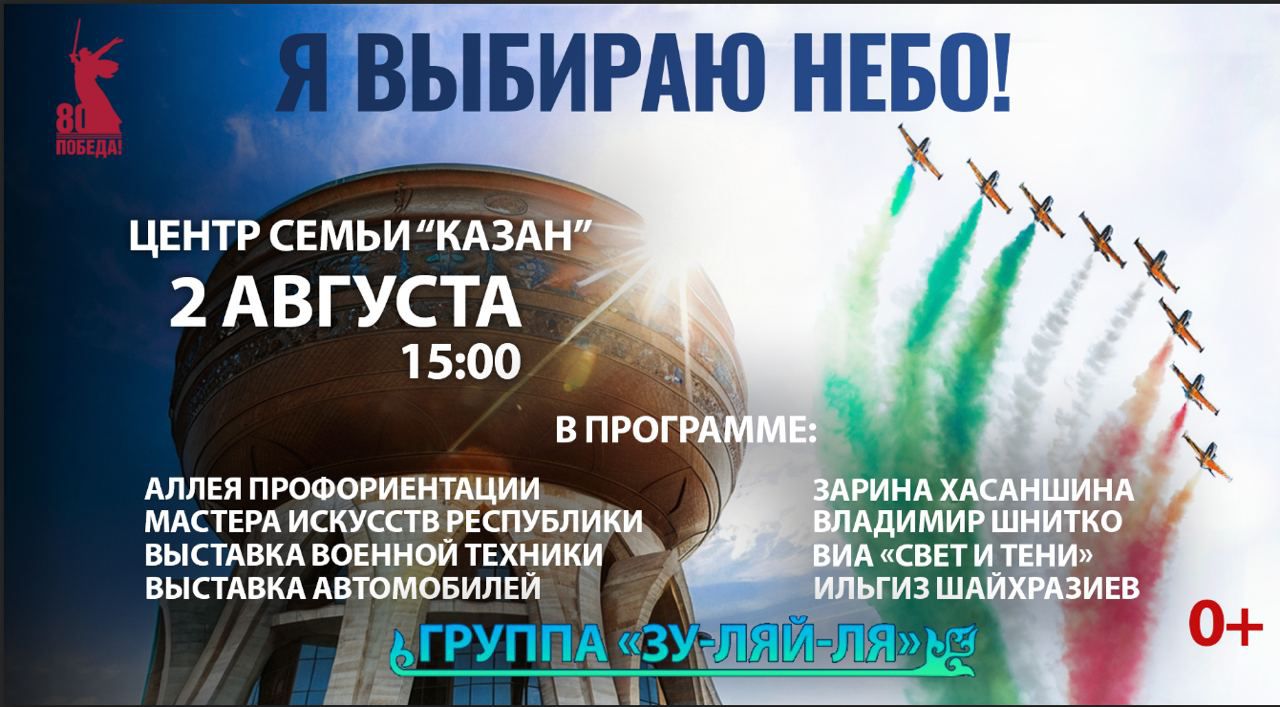 2 августа в столице Татарстана, возле Центра семьи «Казан», в 15 часов, состоится авиационный праздник «Я выбираю небо».