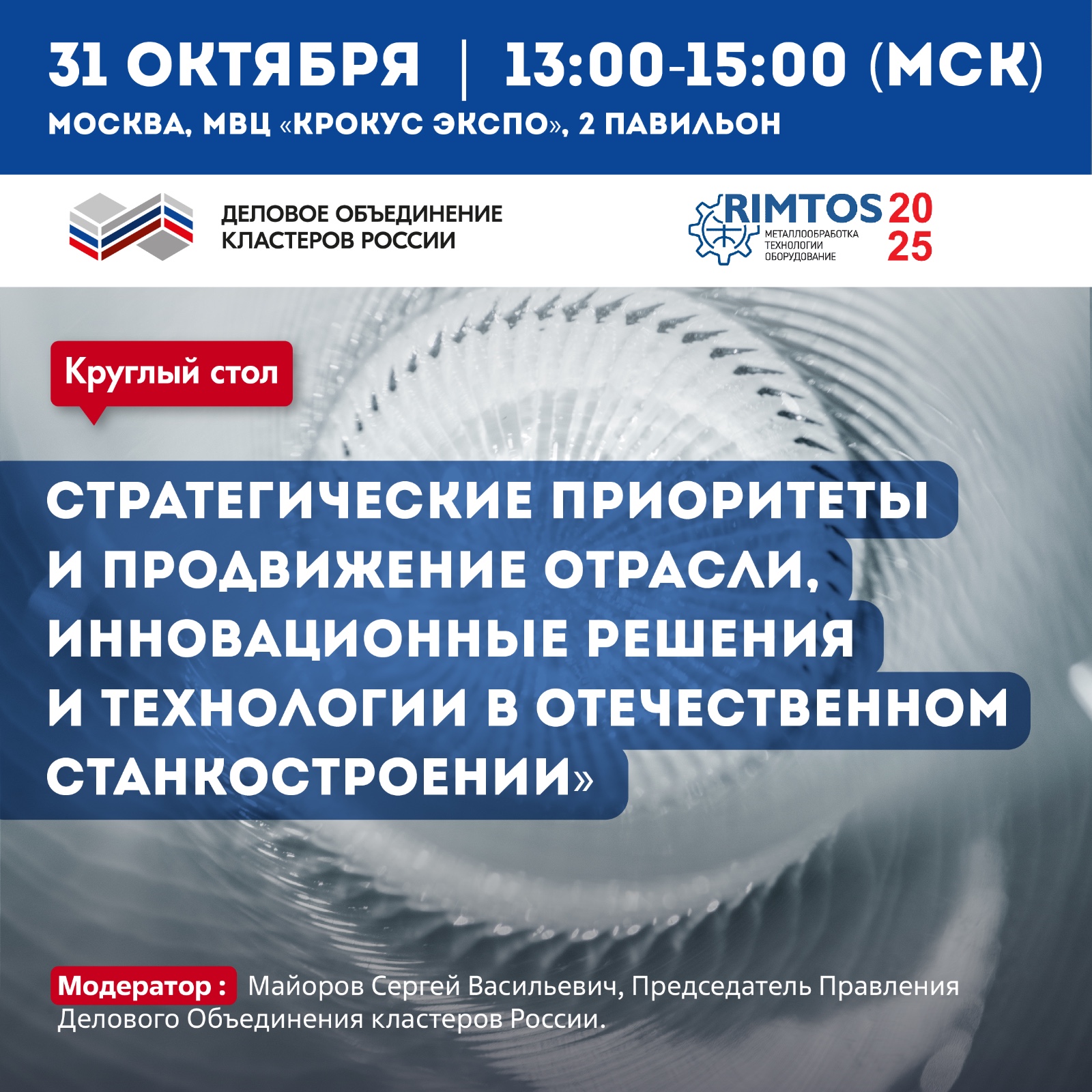 С 29 по 31 октября в Москве пройдет Международная выставка «Металлообработка. Технологии. Оборудование» — «RIMTOS-2025».